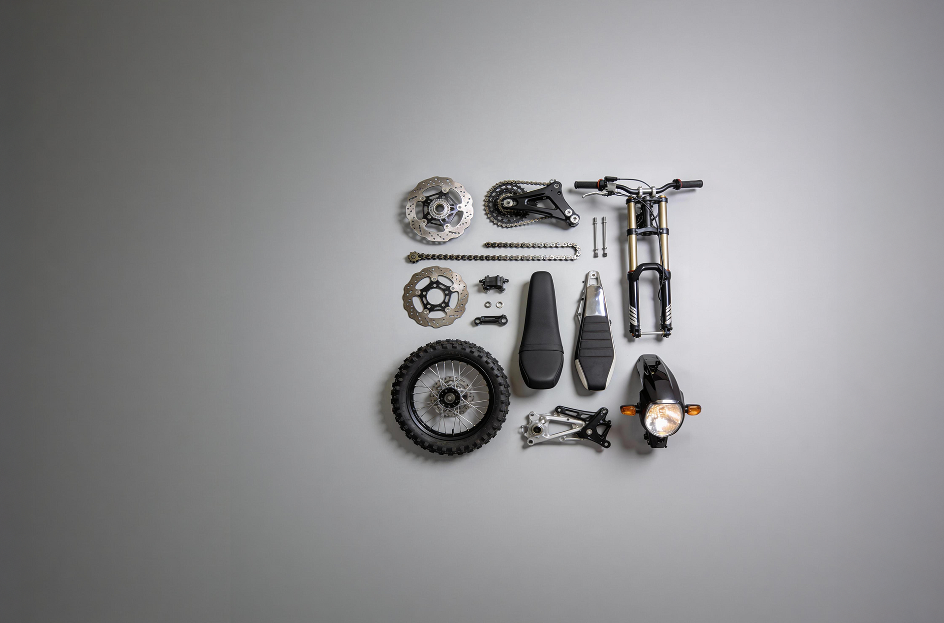 Including the product Chain, Wheel, Headlights, Pull start parts, Throttle, Plasticbody, Tank, Seat, Charger, Tire, Hoodie.